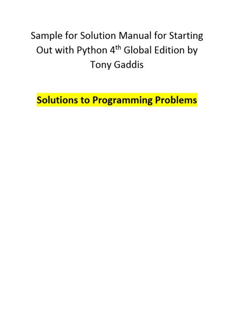 Free Reading SOLUTION MANUAL FOR STARTING OUT WITH PYTHON EBOOK DOWNLOAD FREE PDF PDF